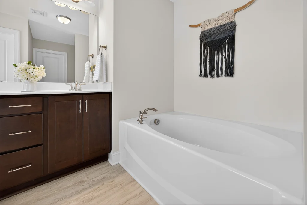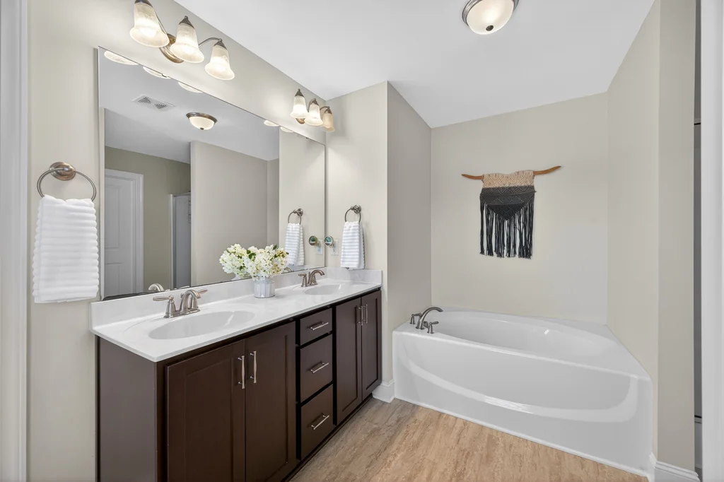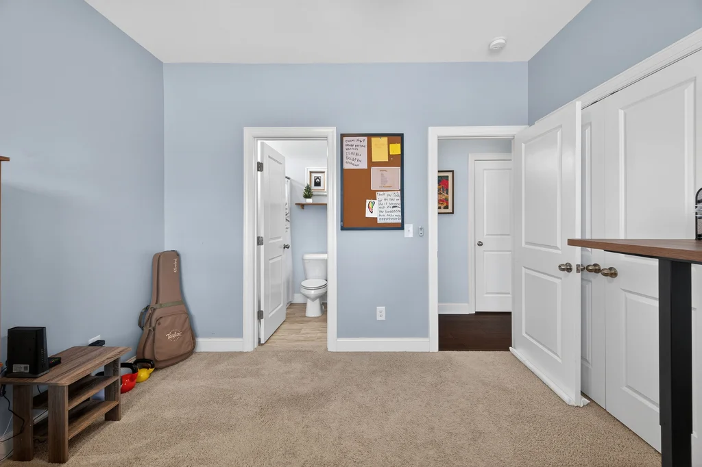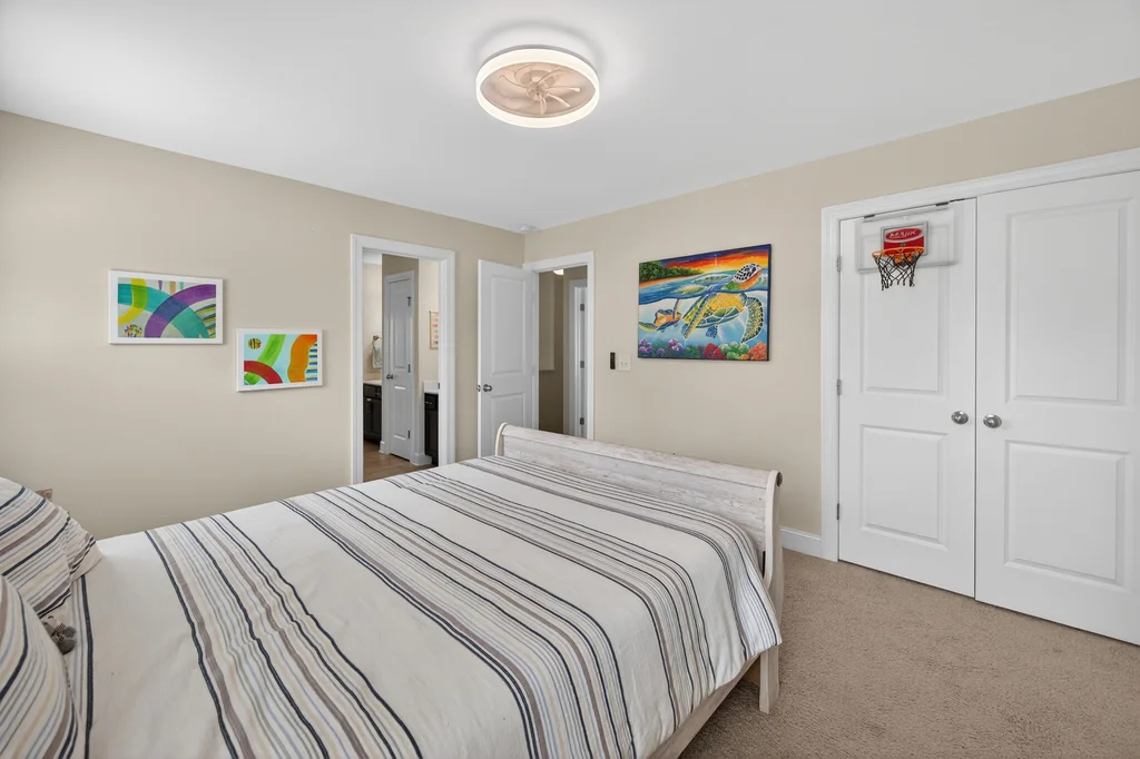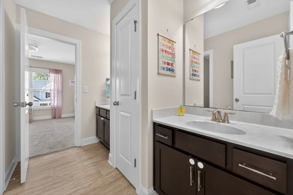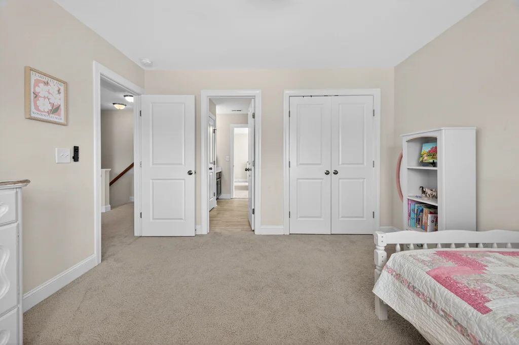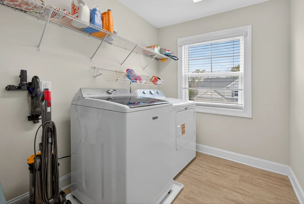 Upstairs, the large owner's suite offers a soaking tub, separate shower, and a generous walk-in closet. Two additional bedrooms share a Jack-and-Jill bath with dual private vanity areas. Second floor laundry room for easy access.