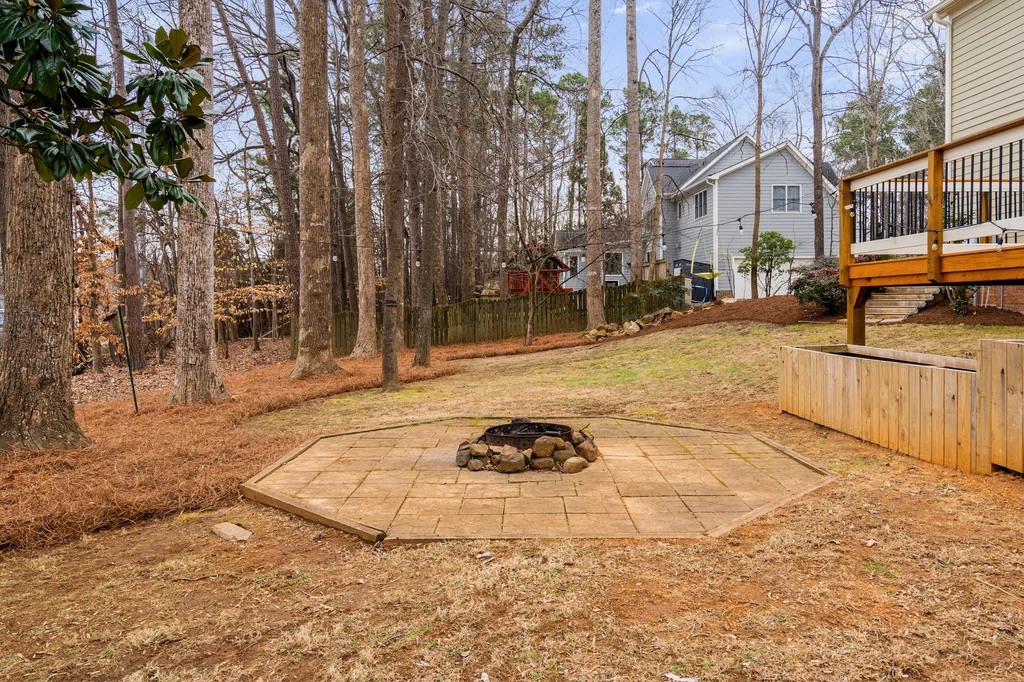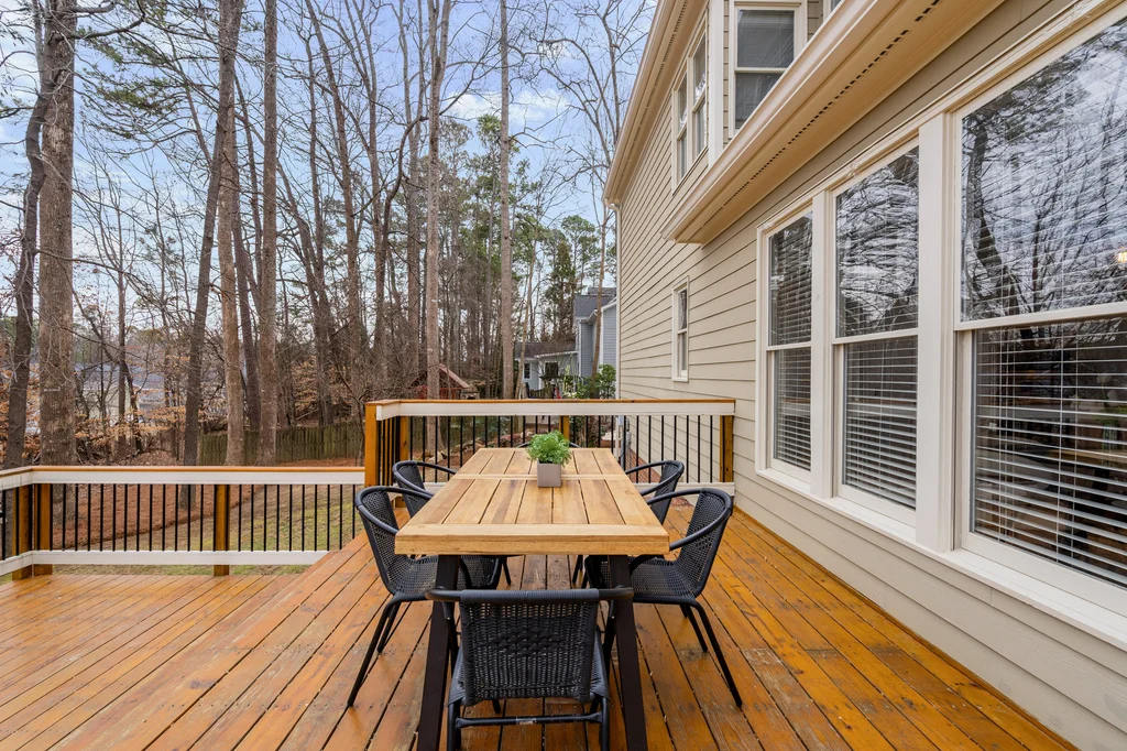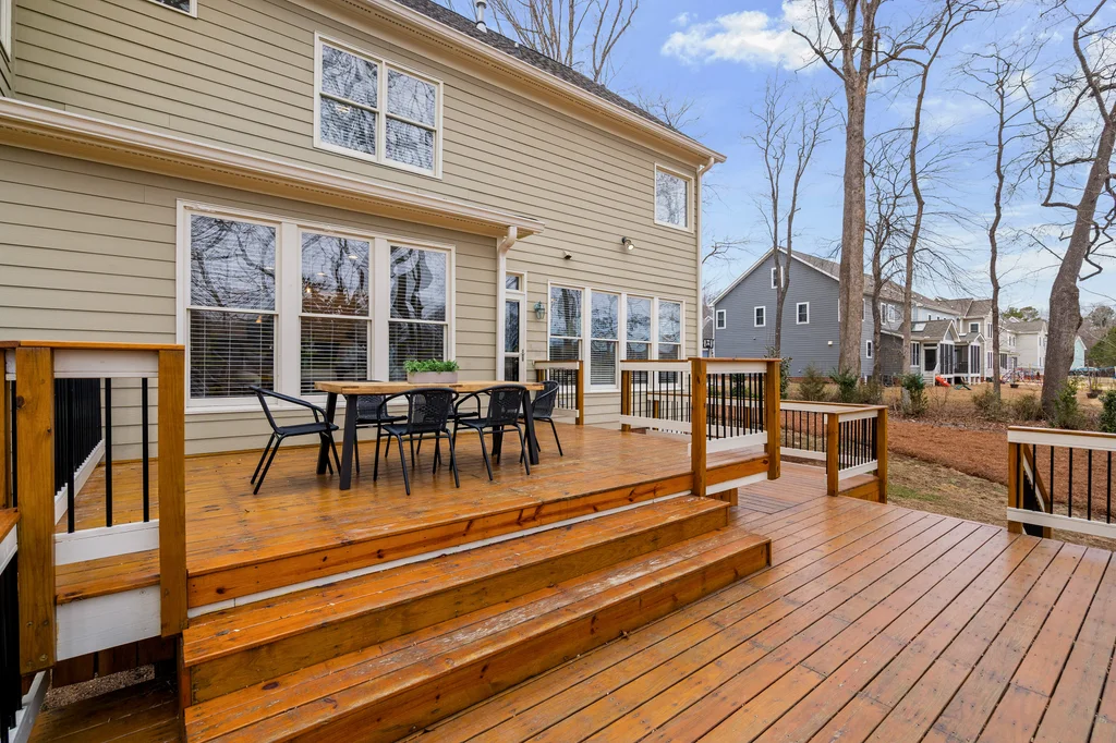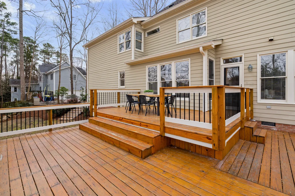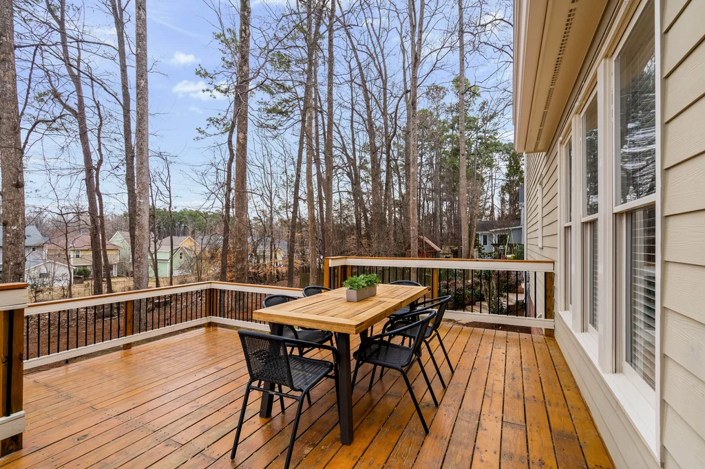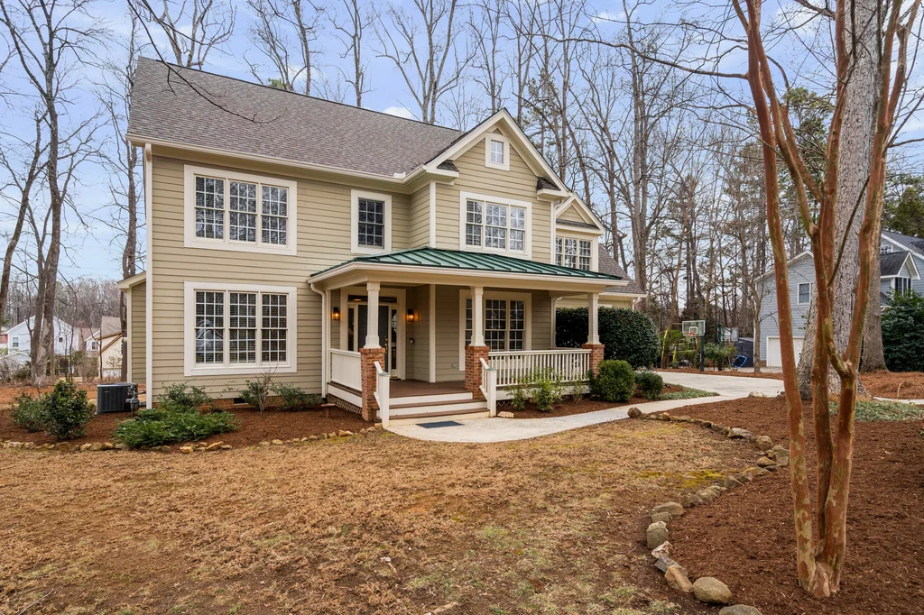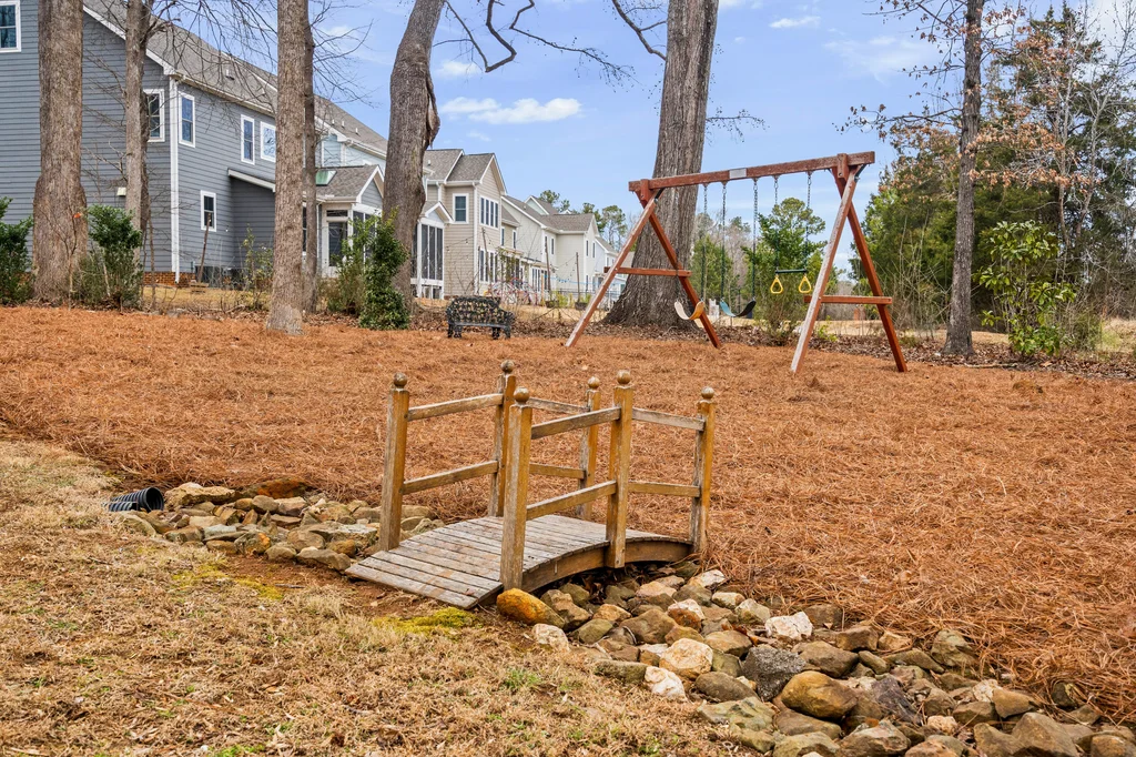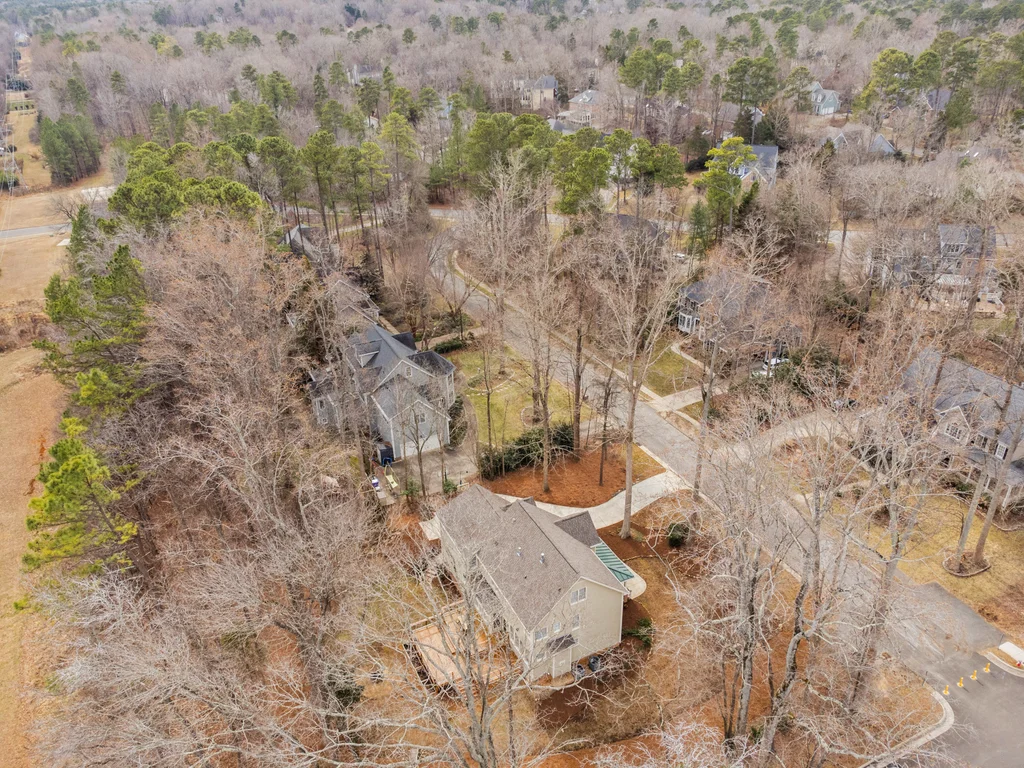 Real Estate Trifecta! This rare gem is meticulously maintained and thoughtfully upgraded, nestled on a wooded 0.44-acre lot in the desirable Chapel Hill-Carrboro City Schools district. Open floor plan with contemporary flair offers gleaming hardwood floors throughout the first floor, an updated kitchen with quartz counters, abundant cabinetry, and newer stainless-steel appliances. Light-filled windows flank the family room with a gas fireplace. Gracious dining room and private office complete the first floor. Upstairs is the private owner's suite with spa-like bath with dual vanities and large glass shower. Also on the second floor are three spacious secondary bedrooms, a full bath, laundry room and a versatile bonus room with additional access from the kitchen/drop. A quiet retreat with full bath is on the third floor-perfect for an office, playroom or 5th bedroom. Enjoy the large, tiered decks overlooking a flat backyard, complete with garden boxes, firepit and swing set backing to an HOA buffer. Notable updates include roof replacement (2021), kitchen renovation (2021), downstairs HVAC system (2020), hardwood flooring on first floor (2021), deck addition (2023),tankless water heater (2023), garage door opener (2024), insulated garage doors (2025), EV charger and new electrical panel (2024). Neighborhood amenities include a community pool, tennis courts, and walking trails. Convenient to shopping, dining, and major highways. Don't miss this incredible opportunity to call this paradise your home!