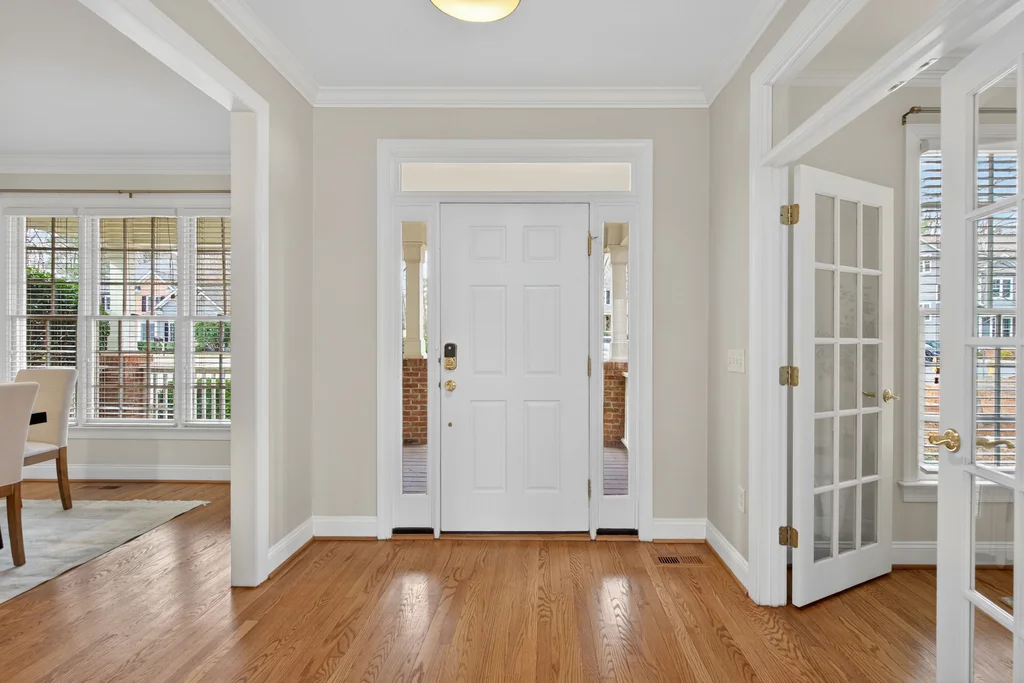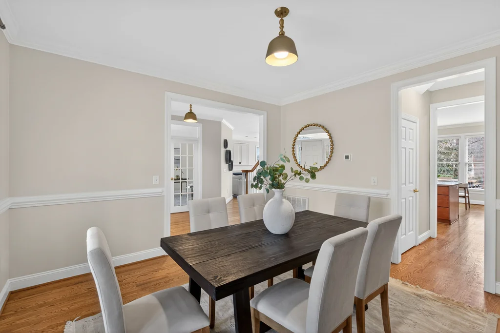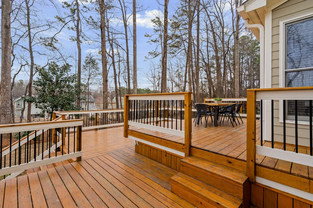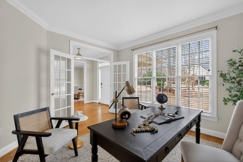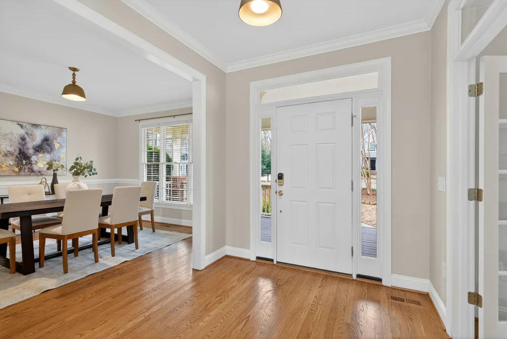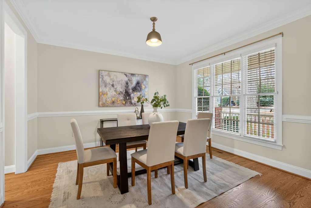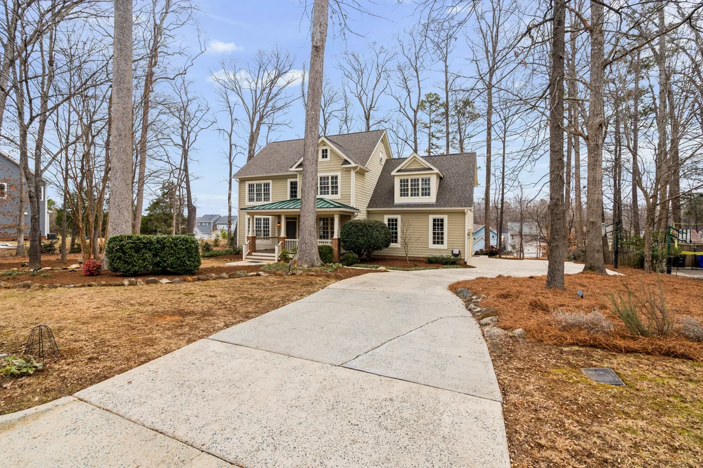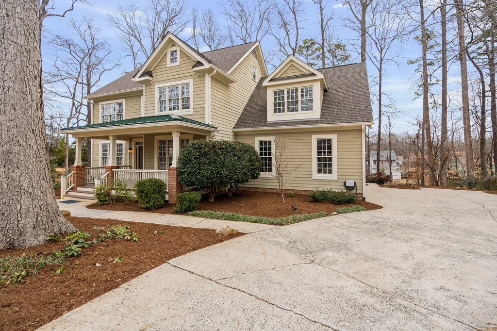 Real Estate Trifecta! This rare gem is meticulously maintained and thoughtfully upgraded, nestled on a wooded 0.44-acre lot in the desirable Chapel Hill-Carrboro City Schools district. Open floor plan with contemporary flair offers gleaming hardwood floors throughout the first floor, an updated kitchen with quartz counters, abundant cabinetry, and newer stainless-steel appliances. Light-filled windows flank the family room with a gas fireplace. Gracious dining room and private office complete the first floor. Upstairs is the private owner's suite with spa-like bath with dual vanities and large glass shower. Also on the second floor are three spacious secondary bedrooms, a full bath, laundry room and a versatile bonus room with additional access from the kitchen/drop. A quiet retreat with full bath is on the third floor-perfect for an office, playroom or 5th bedroom. Enjoy the large, tiered decks overlooking a flat backyard, complete with garden boxes, firepit and swing set backing to an HOA buffer. Notable updates include roof replacement (2021), kitchen renovation (2021), downstairs HVAC system (2020), hardwood flooring on first floor (2021), deck addition (2023),tankless water heater (2023), garage door opener (2024), insulated garage doors (2025), EV charger and new electrical panel (2024). Neighborhood amenities include a community pool, tennis courts, and walking trails. Convenient to shopping, dining, and major highways. Don't miss this incredible opportunity to call this paradise your home!