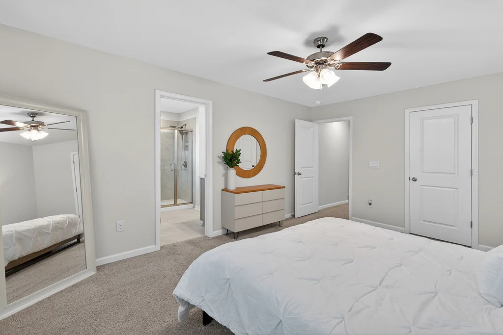 Upstairs, the large primary suite provides a comfortable retreat with a 5-foot tiled shower, water closet, linen closet, and a spacious walk-in closet. Two additional bedrooms and a full bath complete the second floor.